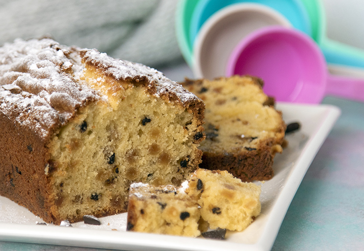 Je koopt deze mix in ’n zak van 400 gram en dat is dus precies genoeg voor één flinke cake. Zelf toevoegen: eieren en roomboter. Wat deze cake uniek maakt? Niet alleen de chocoladestukjes (die verwacht je natuurlijk al in ’n straciatella-cake) maar de stukjes gedroogde banaan. Die gedroogde banaan… dat zijn serieuze zaken!