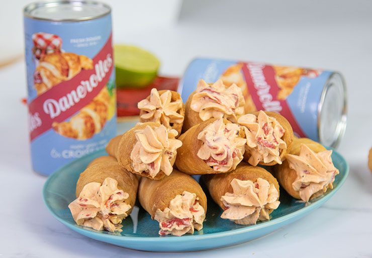 Danerolles hoorntjes met roomkaas en paprika snelle snack